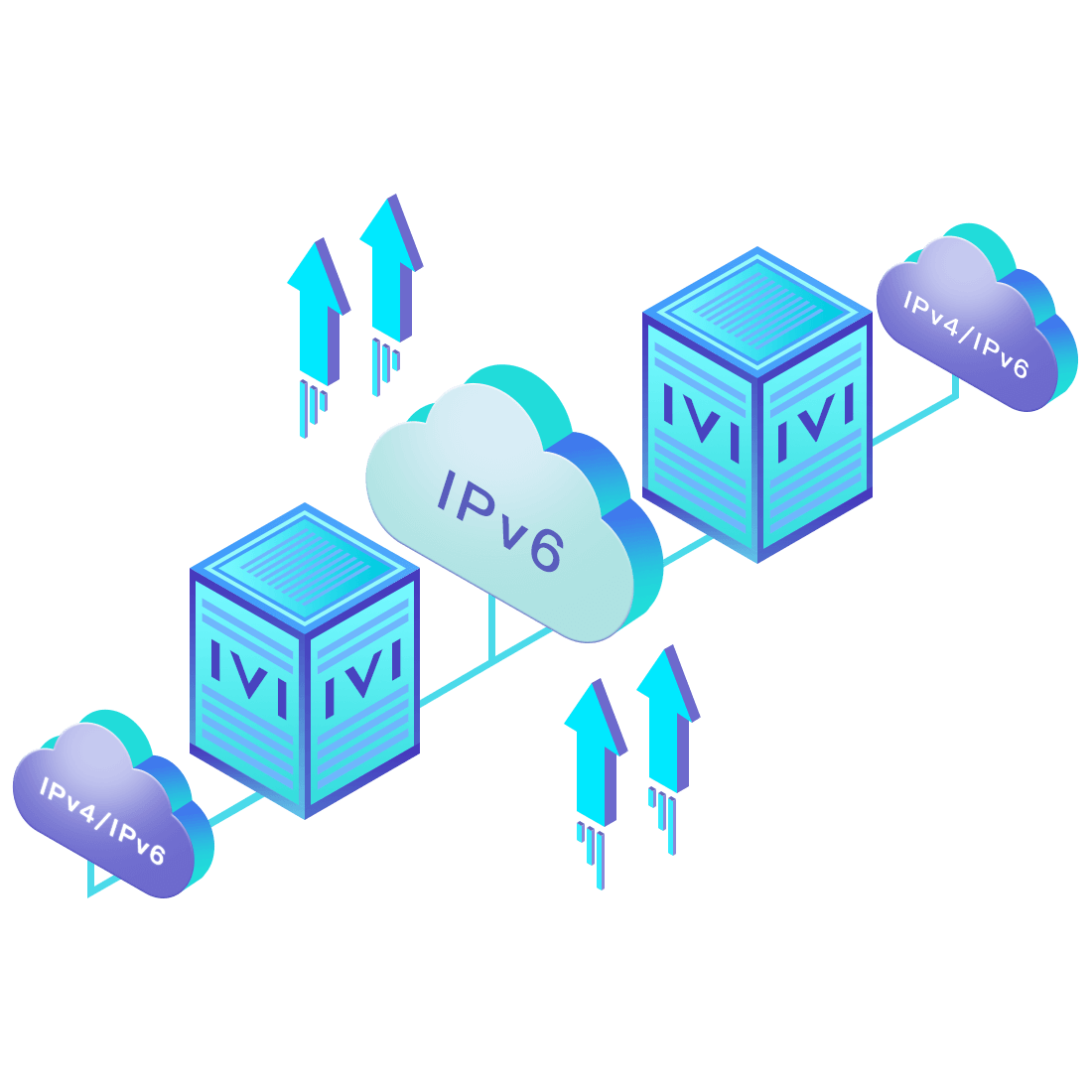 對(duì)正在進(jìn)行IPv6整體升級(jí)規(guī)劃的運(yùn)營商,應(yīng)用IPv6升級(jí)方案2.5,通過IVI無狀態(tài)翻譯技術(shù)和純IPv6接入網(wǎng)絡(luò),為雙??蛻舳撕碗p棧服務(wù)器提供連通服務(wù)。